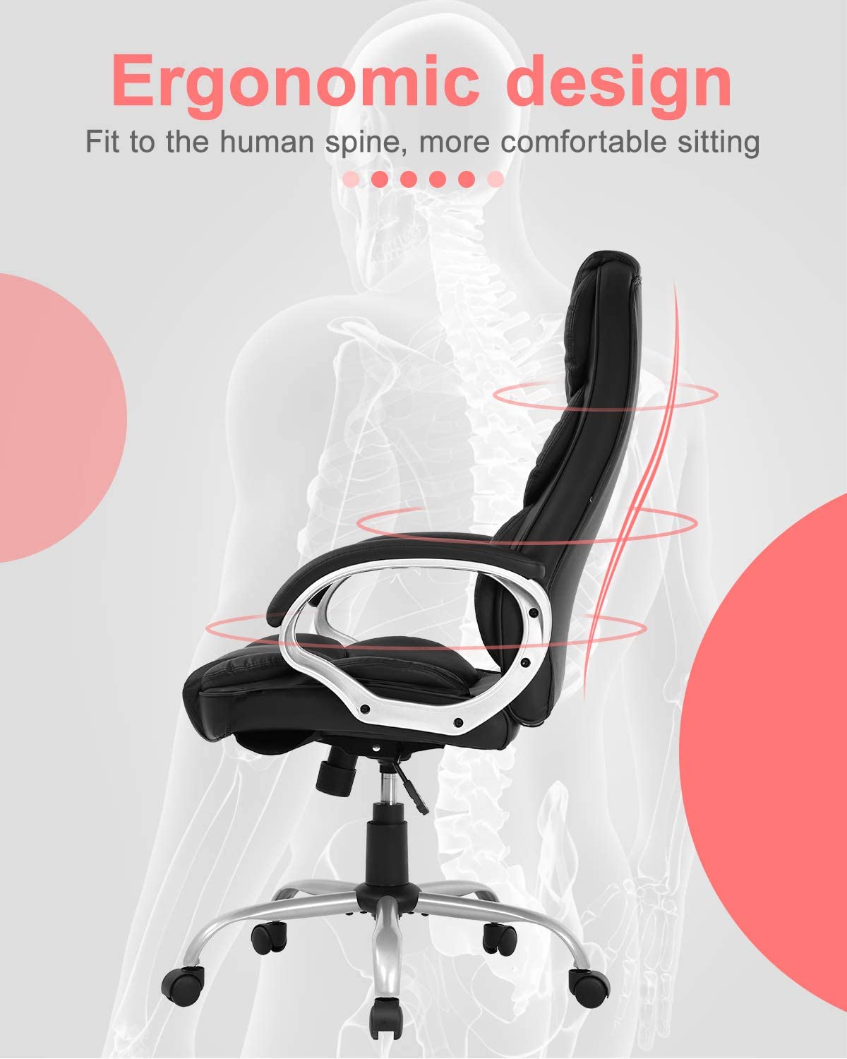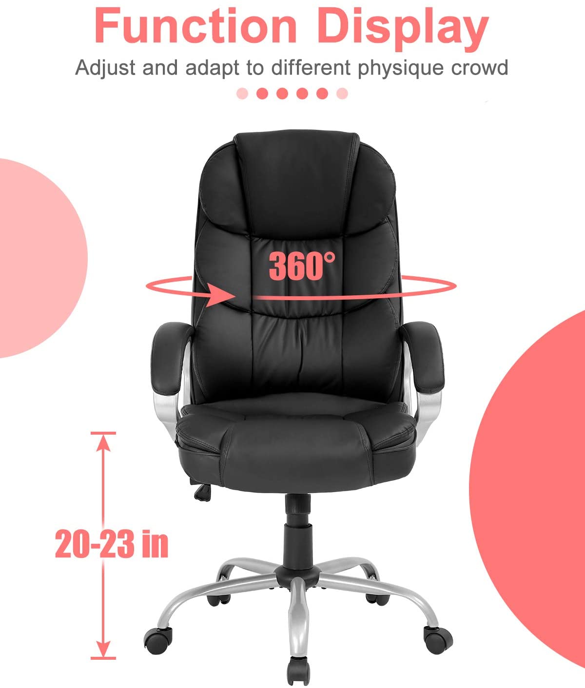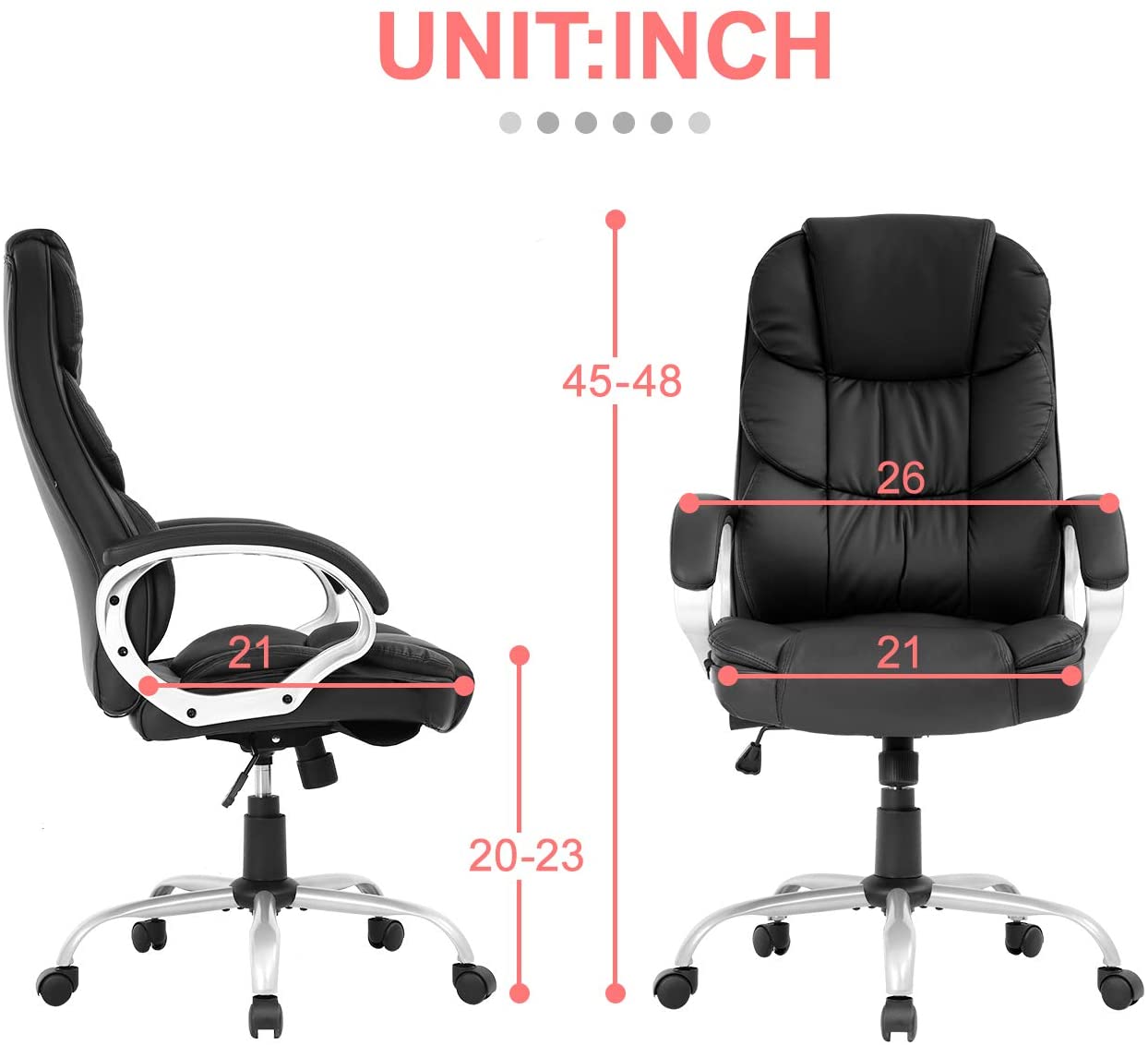 This ergonomic office chair is made of high-quality PU leather, BIFMA certified padded armrests, a gas lift, and a thick seat. Give your office a comfortable. Easy to Install - Office chair comes with all hardware & necessary tools. Follow the instruction, easy to put together, office chair estimated assembly time is about 10-20mins. Comfortable Seating - Ergonomic curved high back perfectly supports your whole body very well, thick cushion padded with high-density shaping sponge that soft and comfortable for long time use. The desk chair was designed for your comfort. Computer chair is upholstered with carefully-selected PU material that is waterproof and resistant to stains, easy to wipe clean, and filled with high-density sponge padding for a natural leather look for an upscale look, unique looks make the computer chair perfect addition to any office. The computer chair uses a reinforced steel frame structure, a sturdy chassis, a BIMFA certified gas lift, and five-star feet with a strong load-bearing capacity, which strengthens the load-bearing capacity of the office chair, which is more stable and durable, making you more at ease during use. This office chair is suitable for the office, gaming room, living room, bedroom, study, and so on. It will make your space more modern and elegant.