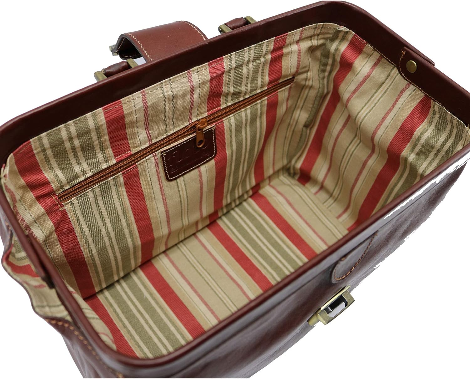 Floto Luggage Italian Ciabatta Doctor Handbag, Vecchio Brown, Small