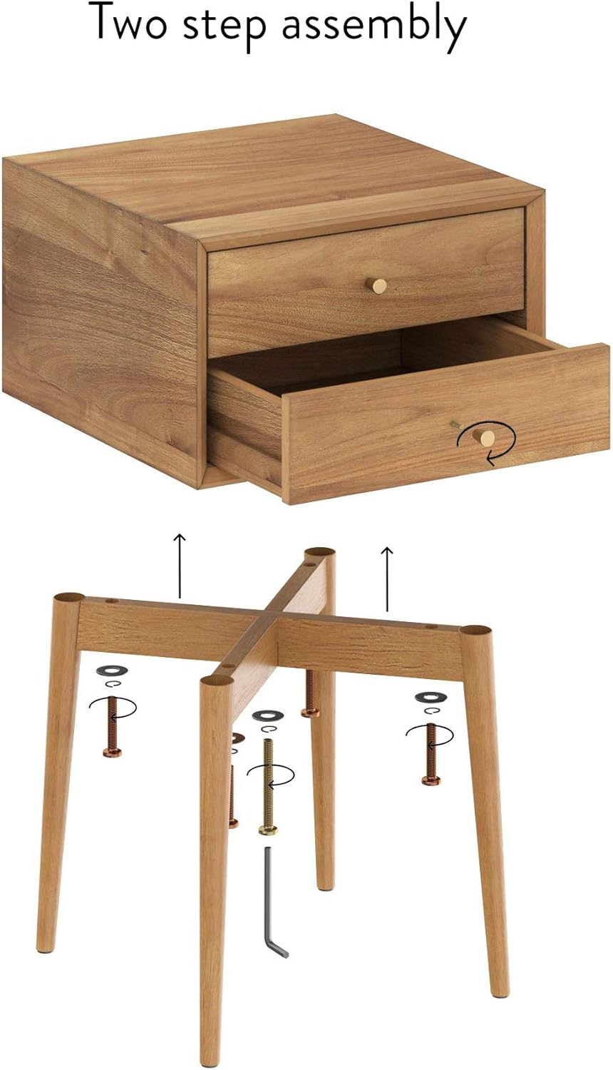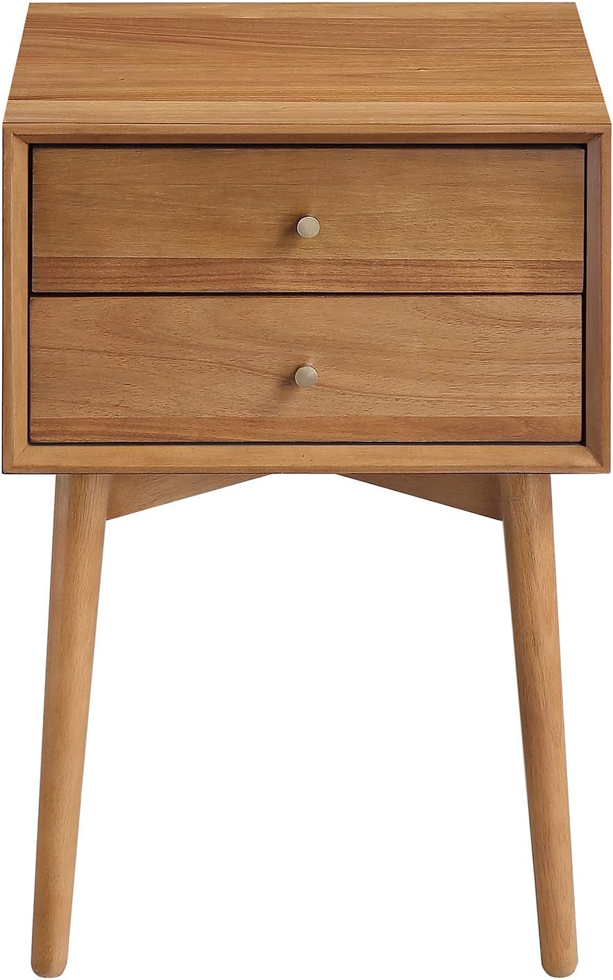 Nathan James 32704 Harper Mid-Century Oak Wood Nightstand with 2-Drawers, Small Side End Table with Storage, Brown